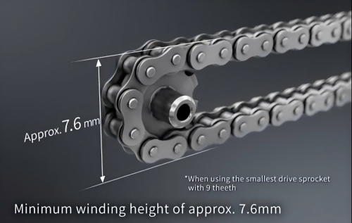 “不銹鋼規(guī)格Epsilon Chain”可非常緊湊地進行卷掛,適用于狹小且復(fù)雜的布局空間。