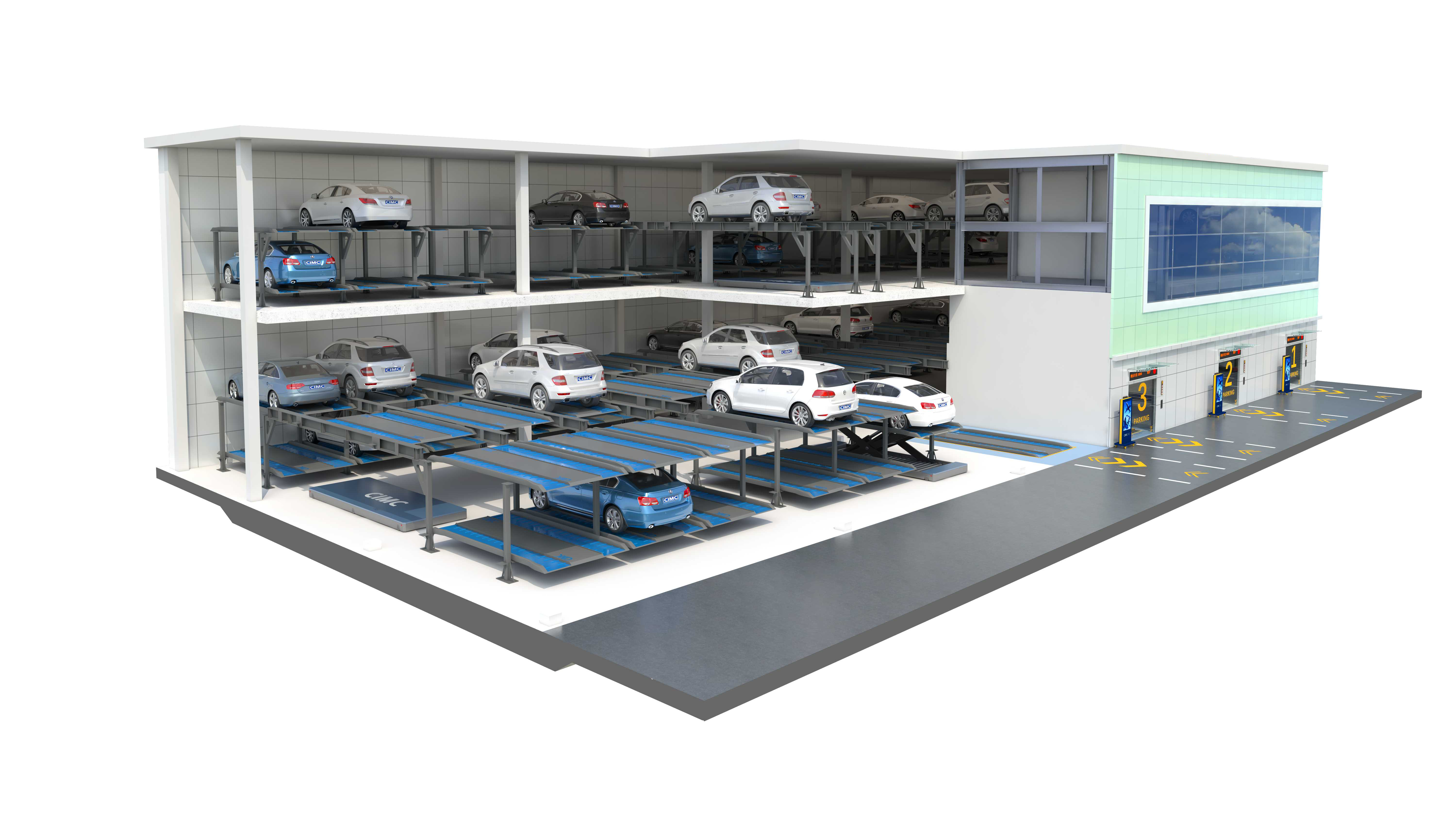 在立體停車場中,車輛通過載車板的升降和橫移進行存取。下層車位可直接存取車輛,上層車位需將下方車位橫移讓出空間后,通過升降裝置(鏈條和鏈輪作為主體)將車輛存入或取出。