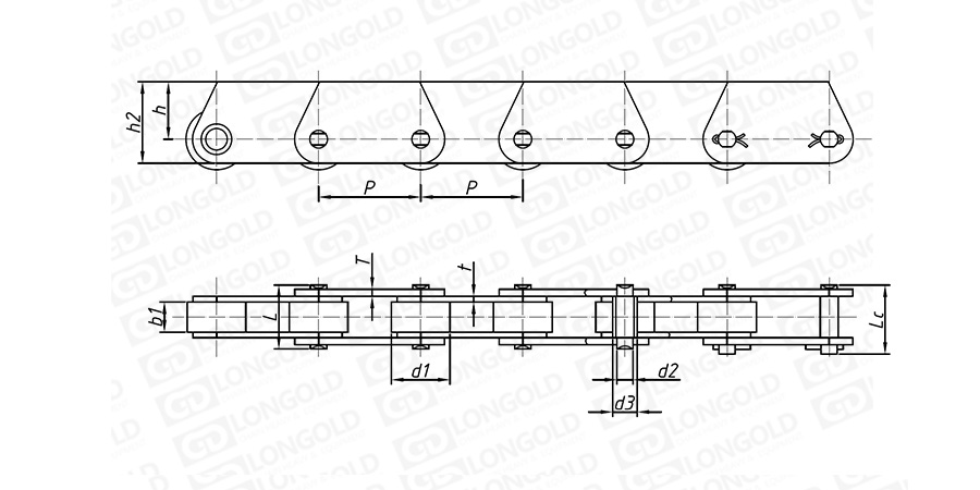 上圖為ZE系列高板輸送鏈的結(jié)構(gòu)圖以及帶附件結(jié)構(gòu)圖。