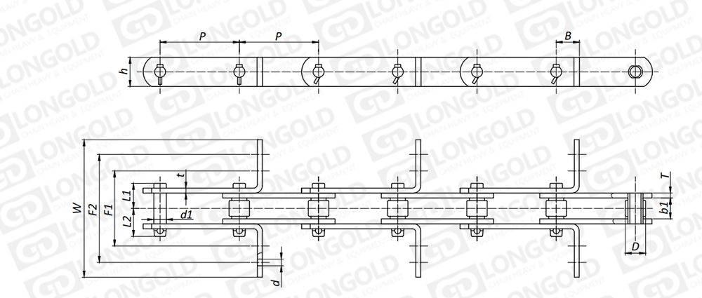 附件是為了將夾具安裝在鏈條上的零部件??筛鶕?jù)客戶要求設(shè)定安裝間隔。