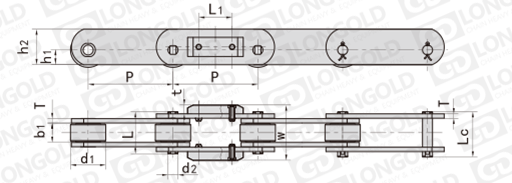 此類型鏈條多用于需要在鏈條上安裝或固定某一物件的工作場合,也廣泛應用于鏈式輸送機等輸送機械,為其傳遞動力和輸送物料。