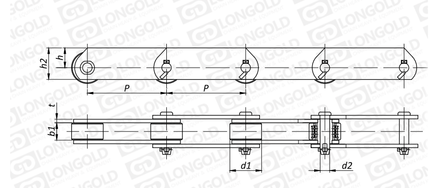 附件可配裝在每一個鏈節(jié)以上的鏈節(jié)間隔,如每偶數(shù)鏈節(jié)安裝,為了容易進行保養(yǎng),安裝在外鏈節(jié)。