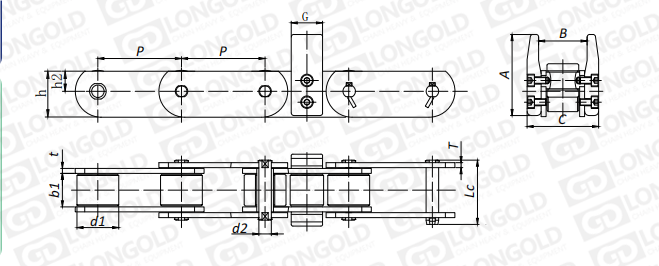 附件可配裝在每一個鏈節(jié)以上的鏈節(jié)間隔,如每偶數(shù)鏈節(jié)安裝,為了容易進(jìn)行保養(yǎng),安裝在外鏈節(jié)。