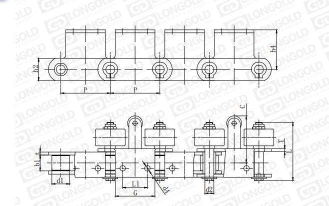 附件是為了將夾具安裝在鏈條上的零部件??筛鶕?jù)客戶要求設(shè)定安裝間隔。