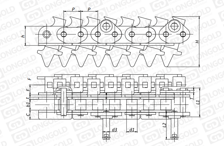 此類型鏈條是在標(biāo)準(zhǔn)短節(jié)距精密滾子鏈作為基鏈的基礎(chǔ)上加裝特殊附件的鏈條。
