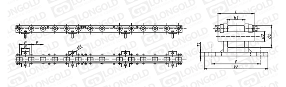 附件是為了將夾具安裝在鏈條上的零部件。可根據(jù)客戶要求設定安裝間隔。
