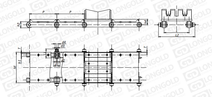 附件是為了將夾具安裝在鏈條上的零部件??筛鶕?jù)客戶要求設(shè)定安裝間隔。