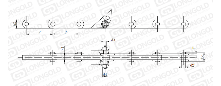 附件可配裝在每一個(gè)鏈節(jié)以上的鏈節(jié)間隔,如每偶數(shù)鏈節(jié)安裝,為了容易進(jìn)行保養(yǎng),安裝在外鏈節(jié)。