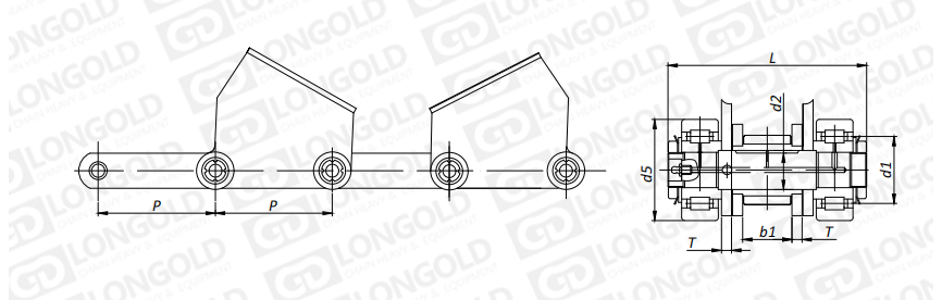 附件是為了將夾具安裝在鏈條上的零部件??筛鶕?jù)客戶要求設(shè)定安裝間隔。