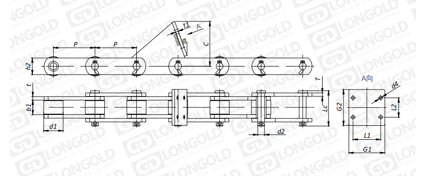 附件是為了將夾具安裝在鏈條上的零部件??筛鶕?jù)客戶要求設(shè)定安裝間隔。