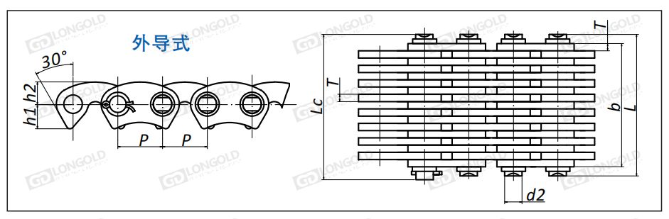 齒形鏈的鏈輪是特制的,如有需要,請咨詢隆德技術(shù)人員。