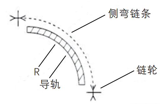 3. 安裝方法:設(shè)計(jì)導(dǎo)向裝置。與標(biāo)準(zhǔn)滾子鏈條相比,側(cè)彎鏈條具有自由度。為了與鏈輪直線咬合,請(qǐng)?jiān)O(shè)計(jì)導(dǎo)向裝置。