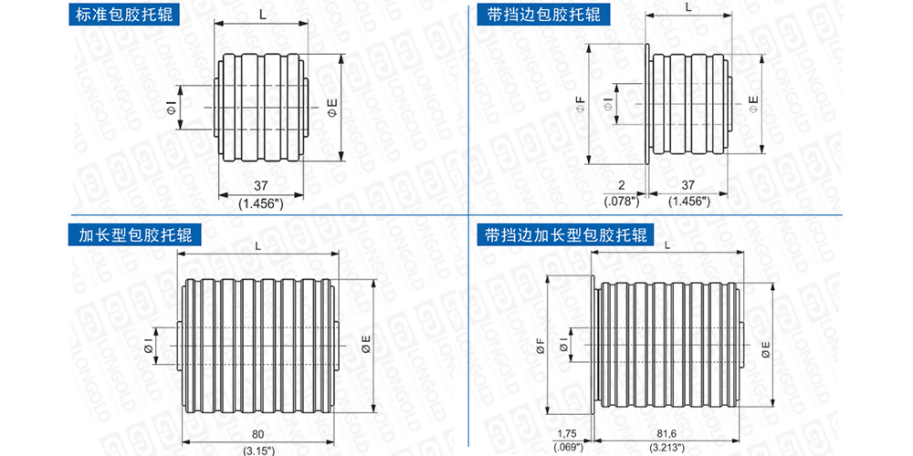 上圖為包膠回程托輥的結(jié)構(gòu)圖,圖中已標(biāo)明本體尺寸。
