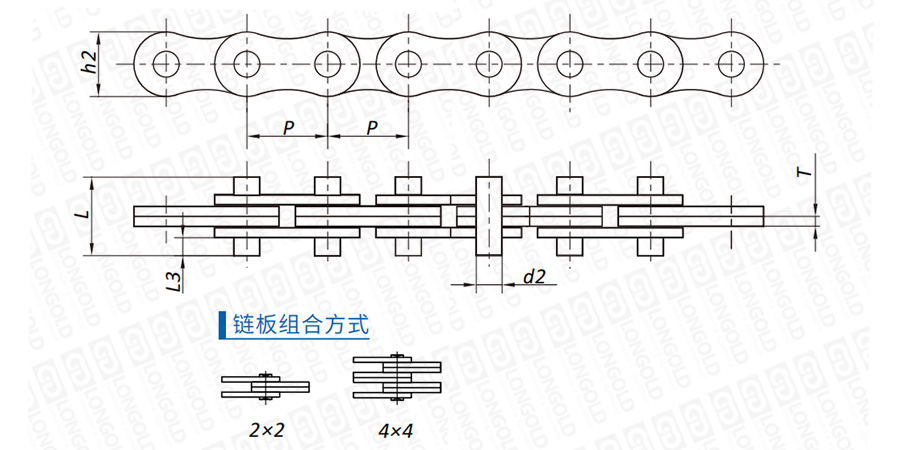 板式鏈條僅由鏈板和銷子構成。鏈板被銷子連接起來,承受鏈板受到的張力。