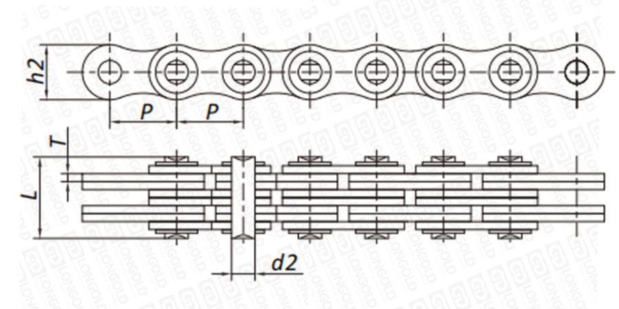 板式鏈條僅由鏈板和銷子構(gòu)成。鏈板被銷子連接起來,承受鏈板受到的張力。