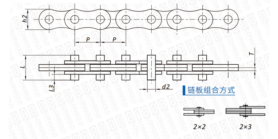 板式鏈是僅用鏈板和銷子構(gòu)成的鏈條,又被稱為平衡鏈。非標LL系列板式鏈,其在尺寸、形狀、結(jié)構(gòu)、性能等方面根據(jù)特定的應用需求進行定制化設計和制造,是一種輕系列板式鏈,適于直線往返傳動結(jié)構(gòu)。適用于斷裂載荷與重量比率高,成本低的應用環(huán)境。要求載荷為靜態(tài)載荷,且低頻率,低速度運動。