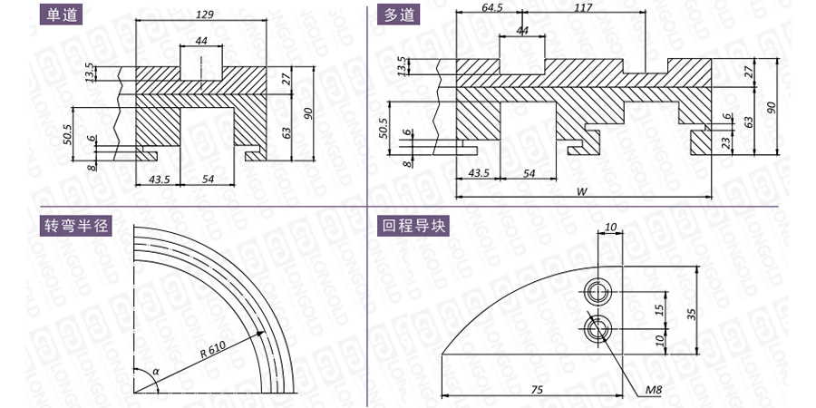 在選擇軌道時,需要考慮安裝尺寸、材質(zhì)性質(zhì)、轉(zhuǎn)彎角度等因素,如有需要,請咨詢隆德技術(shù)人員。