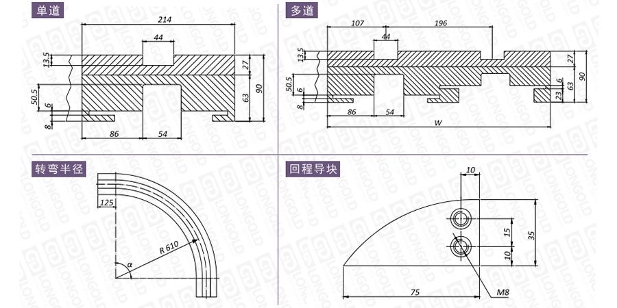 在選擇軌道時(shí),需要考慮安裝尺寸、材質(zhì)性質(zhì)、轉(zhuǎn)彎角度等因素,如有需要,請(qǐng)咨詢(xún)隆德技術(shù)人員。