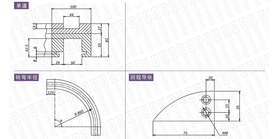 在選擇軌道時(shí),需要考慮安裝尺寸、材質(zhì)性質(zhì)、轉(zhuǎn)彎角度等因素,如有需要,請(qǐng)咨詢隆德技術(shù)人員。