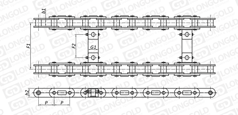 附件可配裝在每一個鏈節(jié)以上的鏈節(jié)間隔,如每偶數(shù)鏈節(jié)安裝,為了容易進(jìn)行保養(yǎng),安裝在外鏈節(jié)。