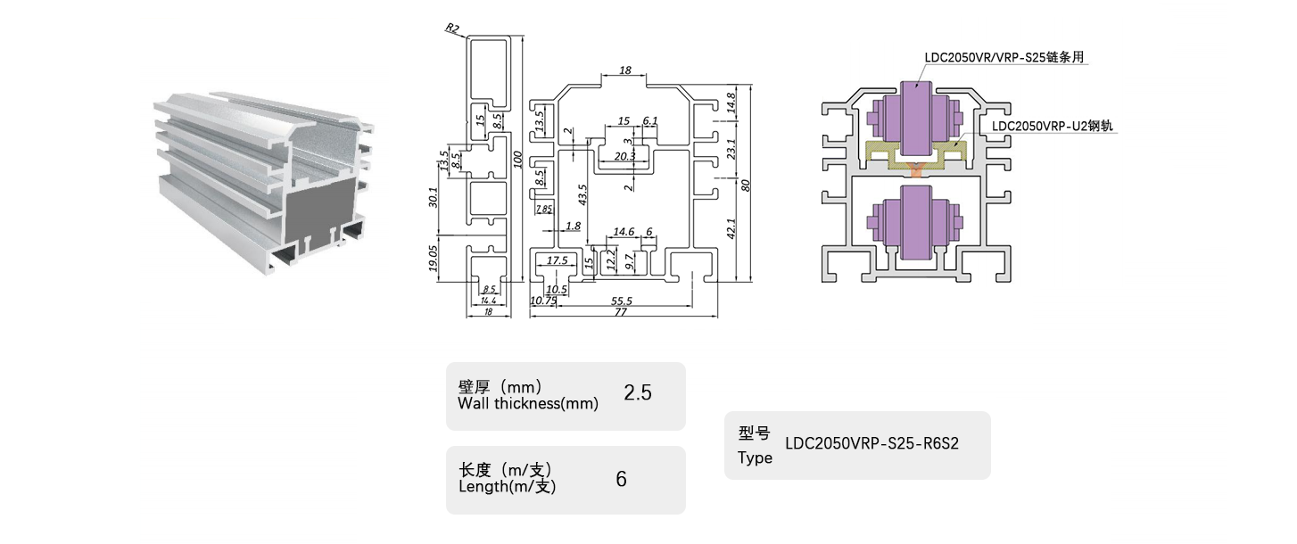 在鋁制框架的輸送側(cè)小直徑滾子部安裝有鋼軌,可用于所有倍速鏈條。