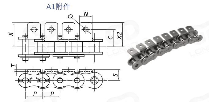 帶附件側(cè)彎A系列鏈條請使用鋼制ANSI標(biāo)準(zhǔn)鏈輪。