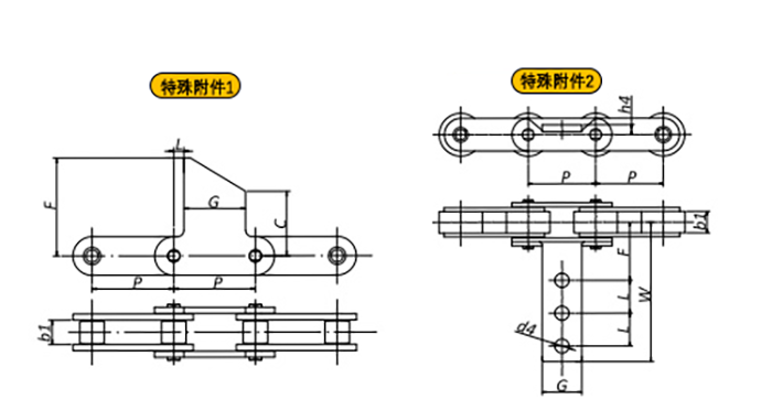 附件是為了將夾具安裝在鏈條上的零部件??筛鶕?jù)客戶要求設(shè)定安裝間隔。