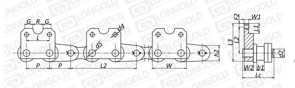 附件是為了將夾具安裝在鏈條上的零部件。可根據(jù)客戶要求設定安裝間隔。