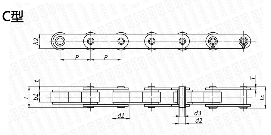 上圖為不銹鋼空心銷軸鏈C型的結(jié)構圖。