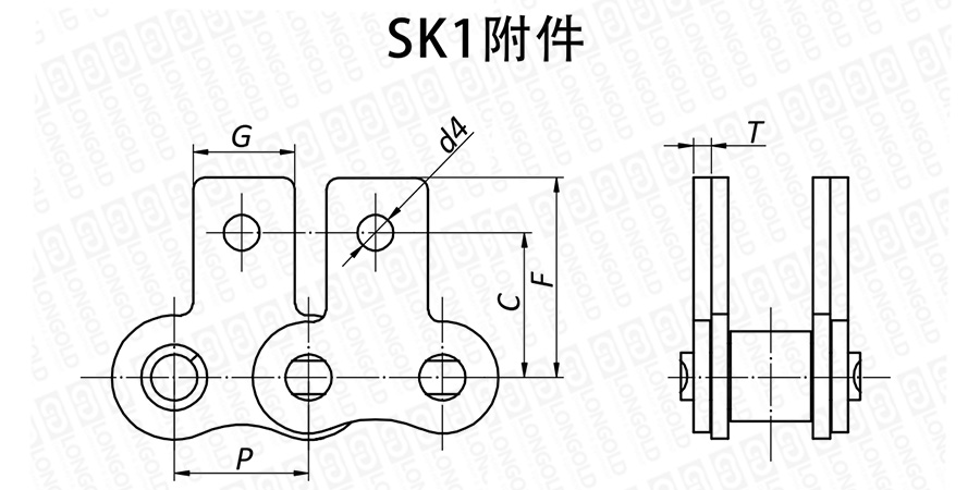 上圖為不銹鋼滾子鏈帶SK1附件的結構圖。