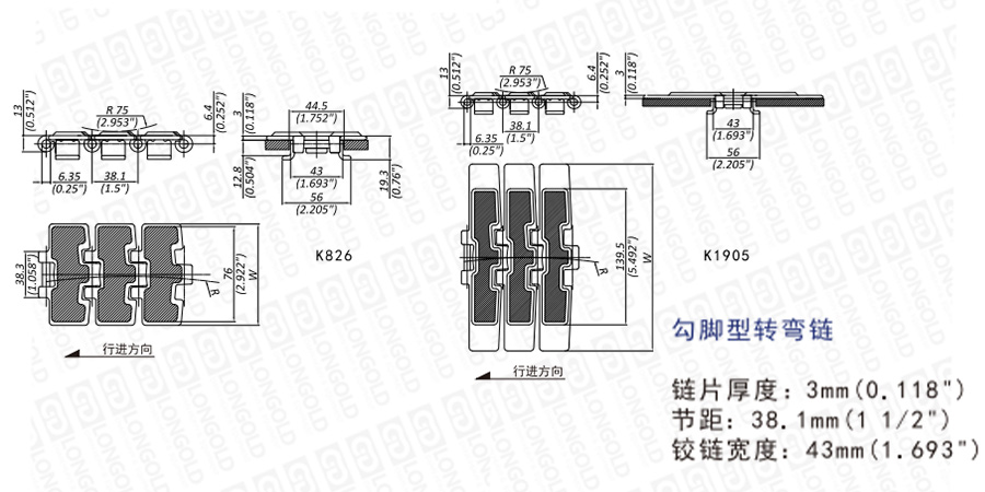 上圖為LDPHDG981T系列轉(zhuǎn)彎鏈的結(jié)構(gòu)圖,圖紙已標(biāo)明本體尺寸。