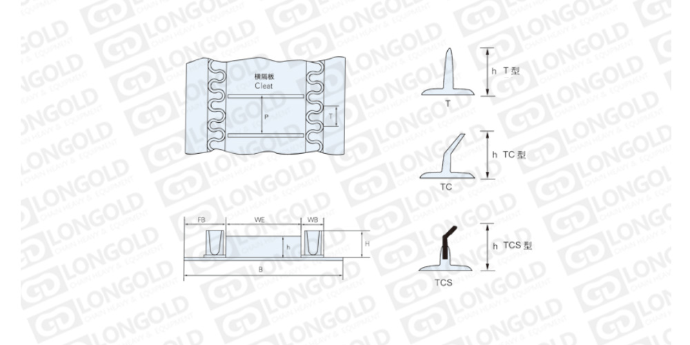 擋邊輸送帶由基帶、波形擋邊、橫隔板三部分組成。