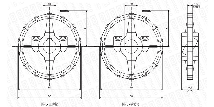 分體式鏈輪設計便于主動輪和從動輪的組裝和拆卸,無需拆裝滾軸,減少安裝和維修成本。