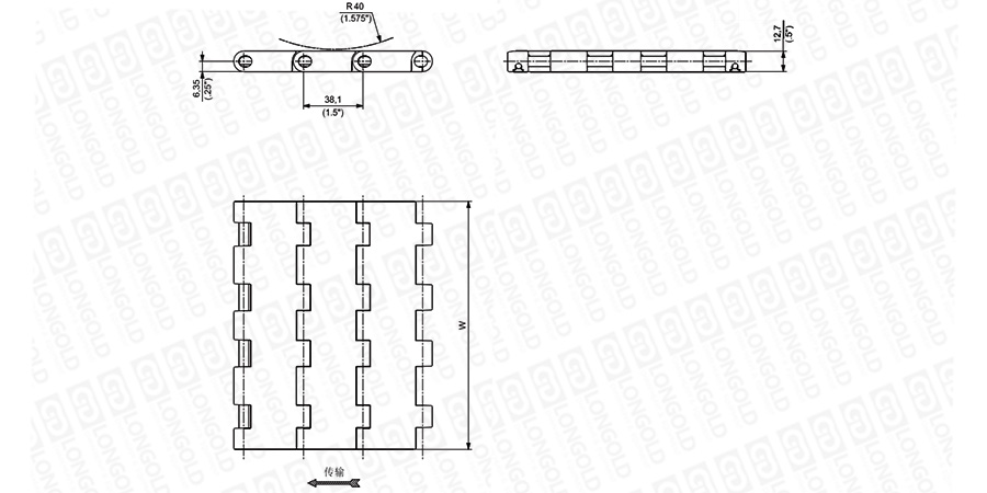 上圖為1 1/2"節(jié)距重載鏈板 UCC系列的結(jié)構(gòu)圖,圖紙中已標(biāo)明部分尺寸。