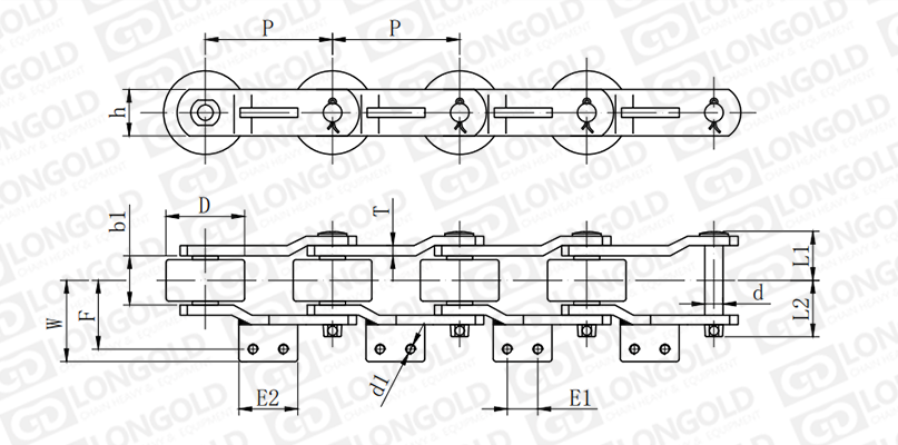 附件是為了將夾具安裝在鏈條上的零部件。可根據(jù)客戶要求設(shè)定安裝間隔。