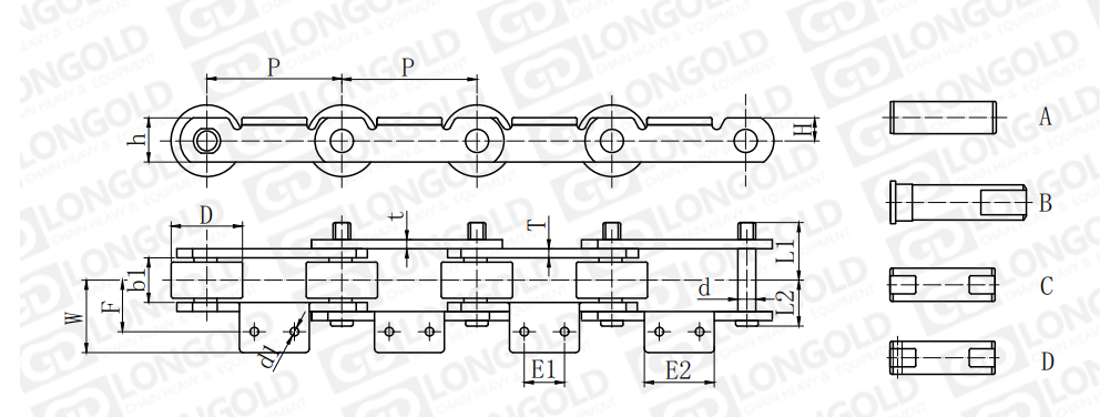 附件是為了將夾具安裝在鏈條上的零部件??筛鶕?jù)客戶要求設(shè)定安裝間隔。