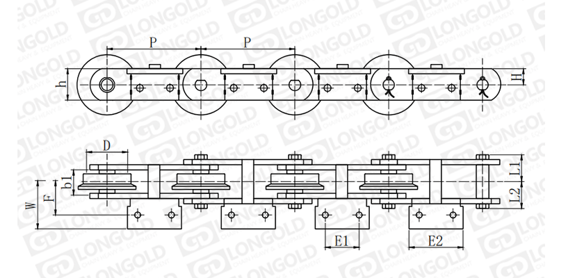 附件可配裝在每一個鏈節(jié)以上的鏈節(jié)間隔,如每偶數鏈節(jié)安裝,為了容易進行保養(yǎng),安裝在外鏈節(jié)。