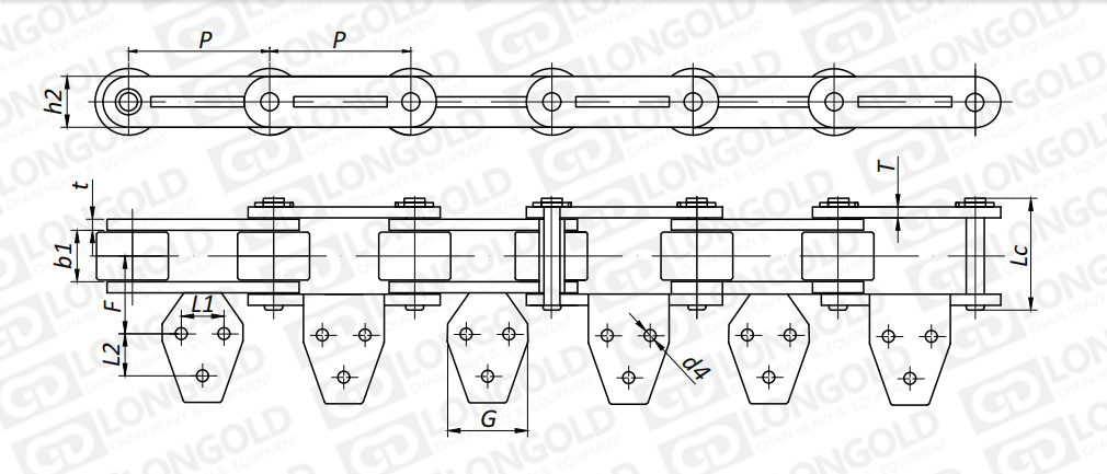 附件是為了將夾具安裝在鏈條上的零部件??筛鶕?jù)客戶要求設(shè)定安裝間隔。