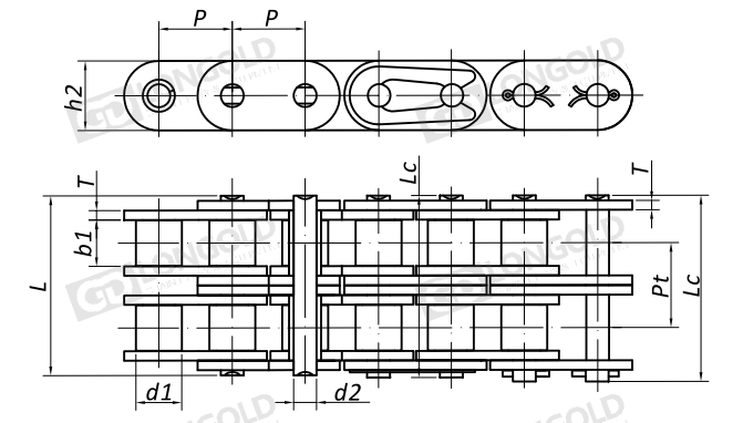 1.連接鏈節(jié)的銷軸形式,LDC35-LDC60為卡簧型 ,LDC80以上為開口銷型