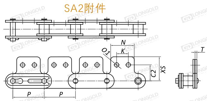 SA2附件,鏈條的一側鏈板延伸,且附板上帶兩個孔的附件形式。