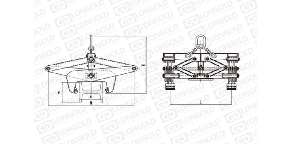 上圖為H型鋼坯夾鉗的結(jié)構(gòu)圖。