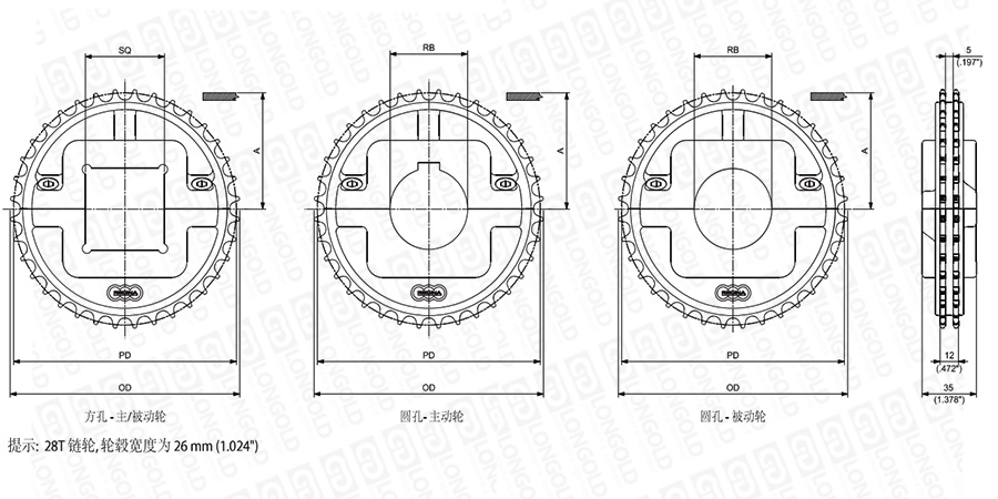 1.圓孔鏈輪表示直徑,方孔鏈輪表示邊長。
