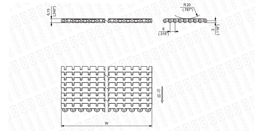 8mm(0.31)超小節(jié)距,與鏈輪或端部壓板接觸時避免弦效應,端部過渡時產(chǎn)品穩(wěn)定性達到最大化。