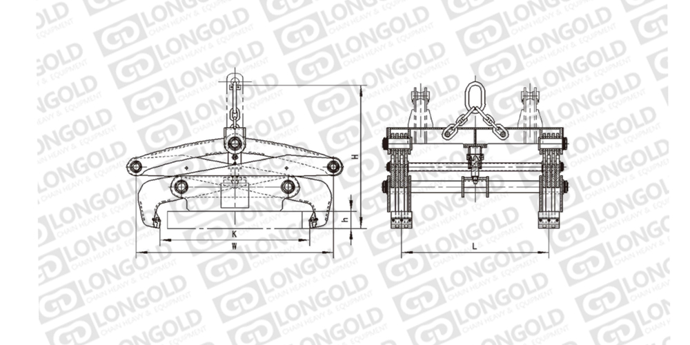 機械杠桿重力式夾鉗,采用杠桿的工作原理,依靠板(方)坯自重夾持板坯并緊鎖,開閉機構(gòu)為螺旋往復(fù)式,能自動實現(xiàn)夾鉗臂的開閉動作,可配置機械或聲光電指示裝置增加開閉動作可靠性。夾鉗不需要任何動力源,結(jié)構(gòu)簡單合理,動作靈活??蓪崿F(xiàn)單塊、多塊板(方)坯的吊運。