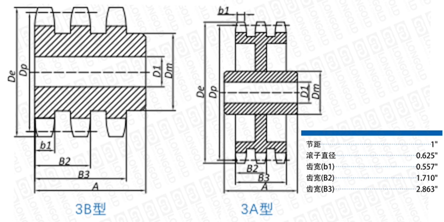 ■3B型鏈輪尺寸表