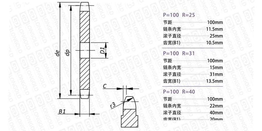 上圖為P100輸送鏈輪的結(jié)構(gòu)圖。