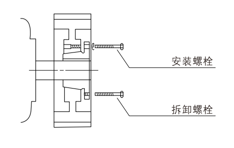 拆卸:拆卸螺栓,并將它們放入錐套法蘭的螺紋孔中,當它們被拉起時,它們將作為千斤頂螺釘作用于產品輪轂的表面,以釋放錐套和輪轂之間的抓緊力。