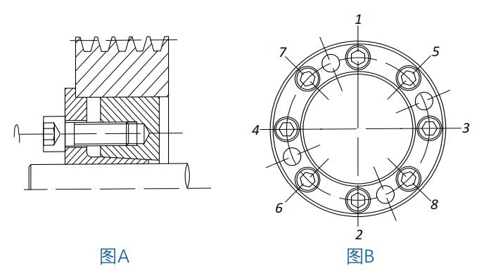 將脹緊聯(lián)結(jié)件擦拭?凈,裝?輪轂和軸的相應(yīng)位置(如圖A所示)。