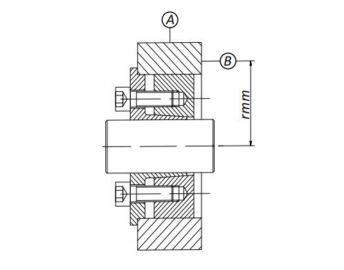 正確按照后的脹緊套應(yīng)檢驗(yàn)徑向跳動(dòng)和軸向跳動(dòng)。軸向跳動(dòng)A≤0.05mm,徑向跳動(dòng)B≤0.002Rmm。