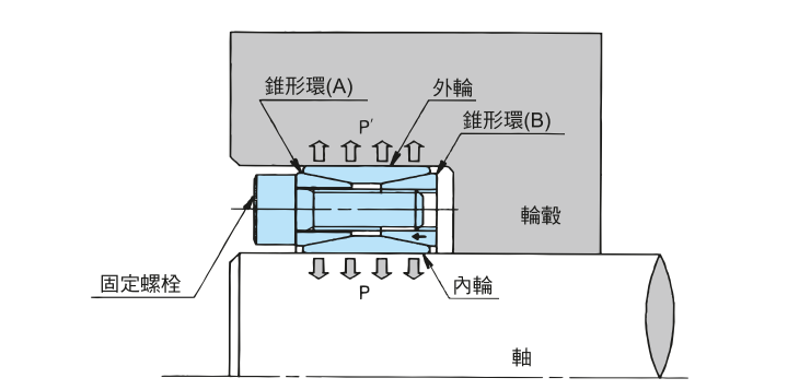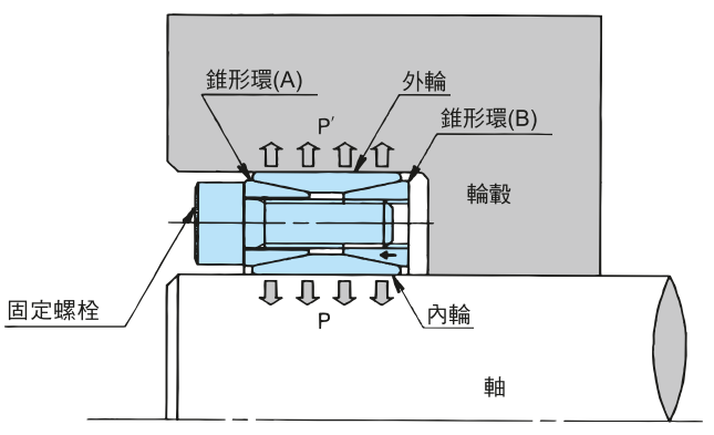 上圖為SS型脹緊套的結(jié)構(gòu)圖。